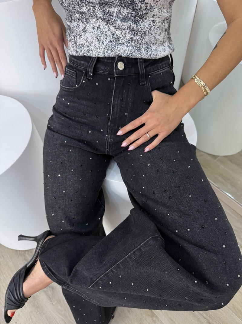 Black Strass Jeans Wide Leg