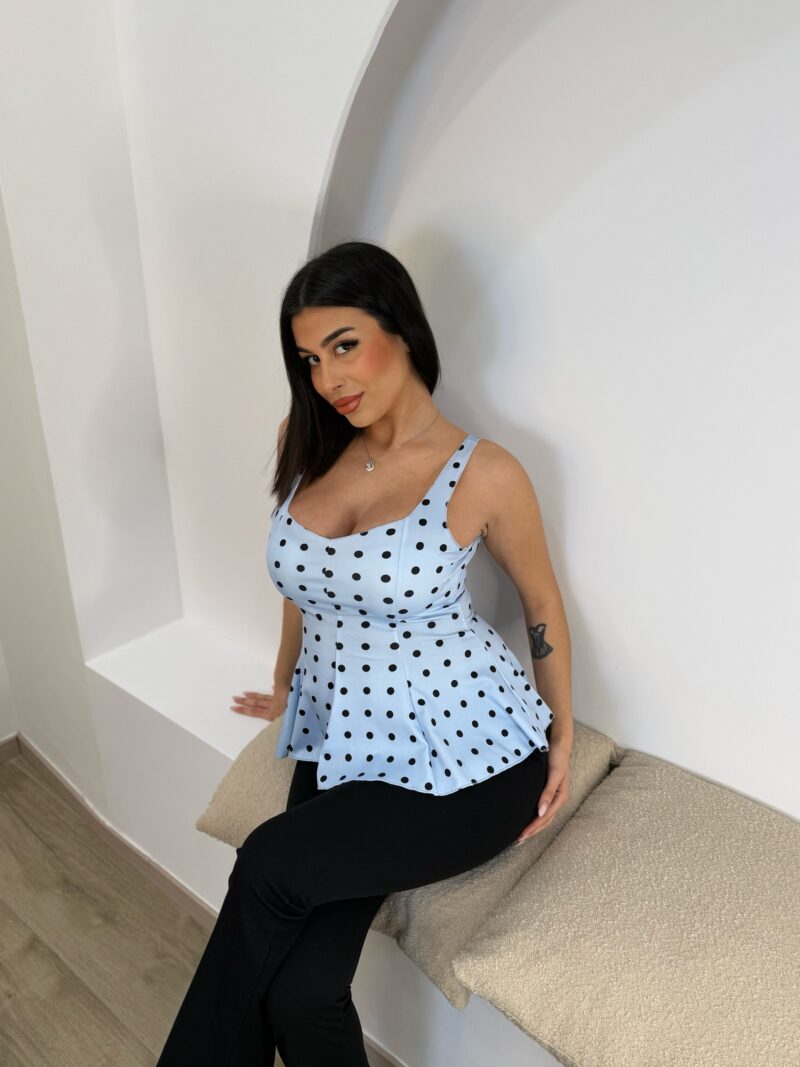 Πουά Ελαστική Μπλούζα Γαλάζιο