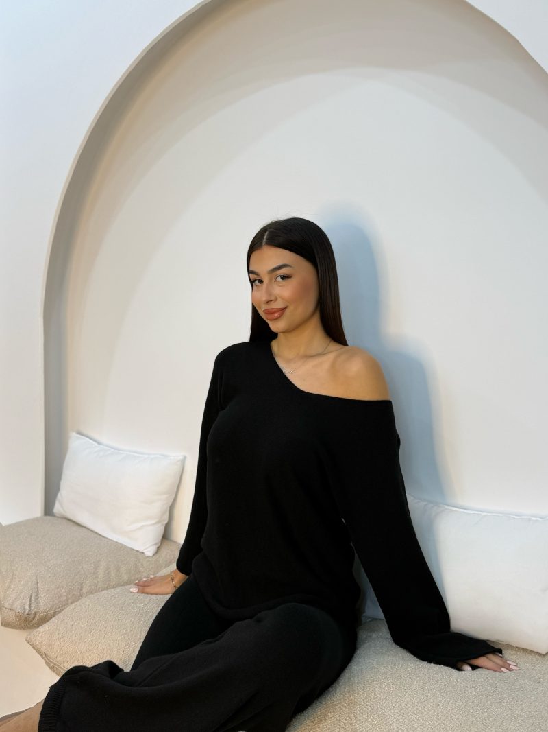 Απίθανο μάλλινο σετακι που δεν τσιμπαει καθόλου , έχει απίθανη μπλούζα που την σφιγγεις όσο θες από τα κορδονακια που διαθέτει πίσω στην πλάτη. Το παντελόνι είναι ψηλομεσο , καμπάνα με λαστιχο στην μέση.