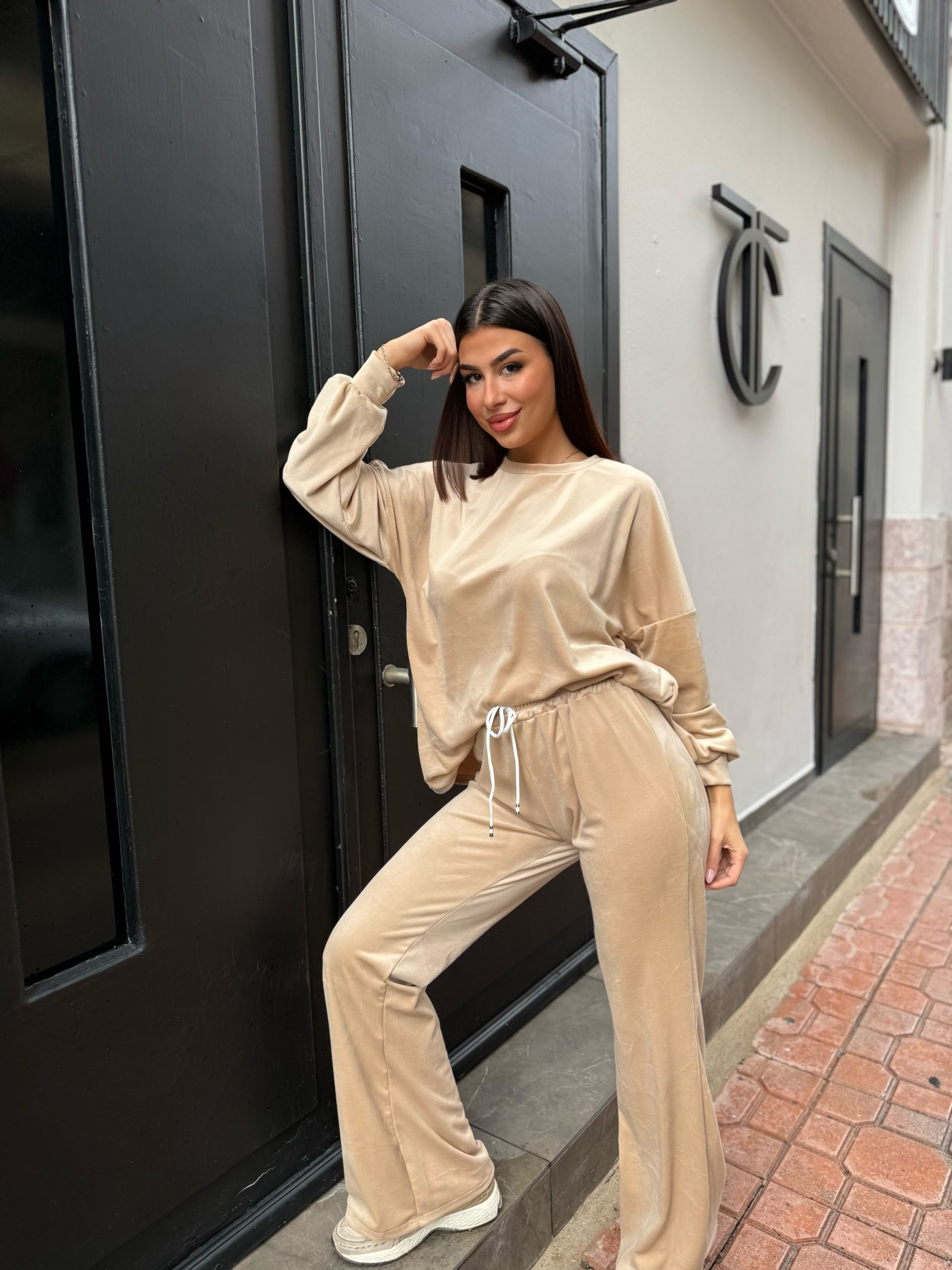 Velvet Λαιμοκοψη Set Μπεζ