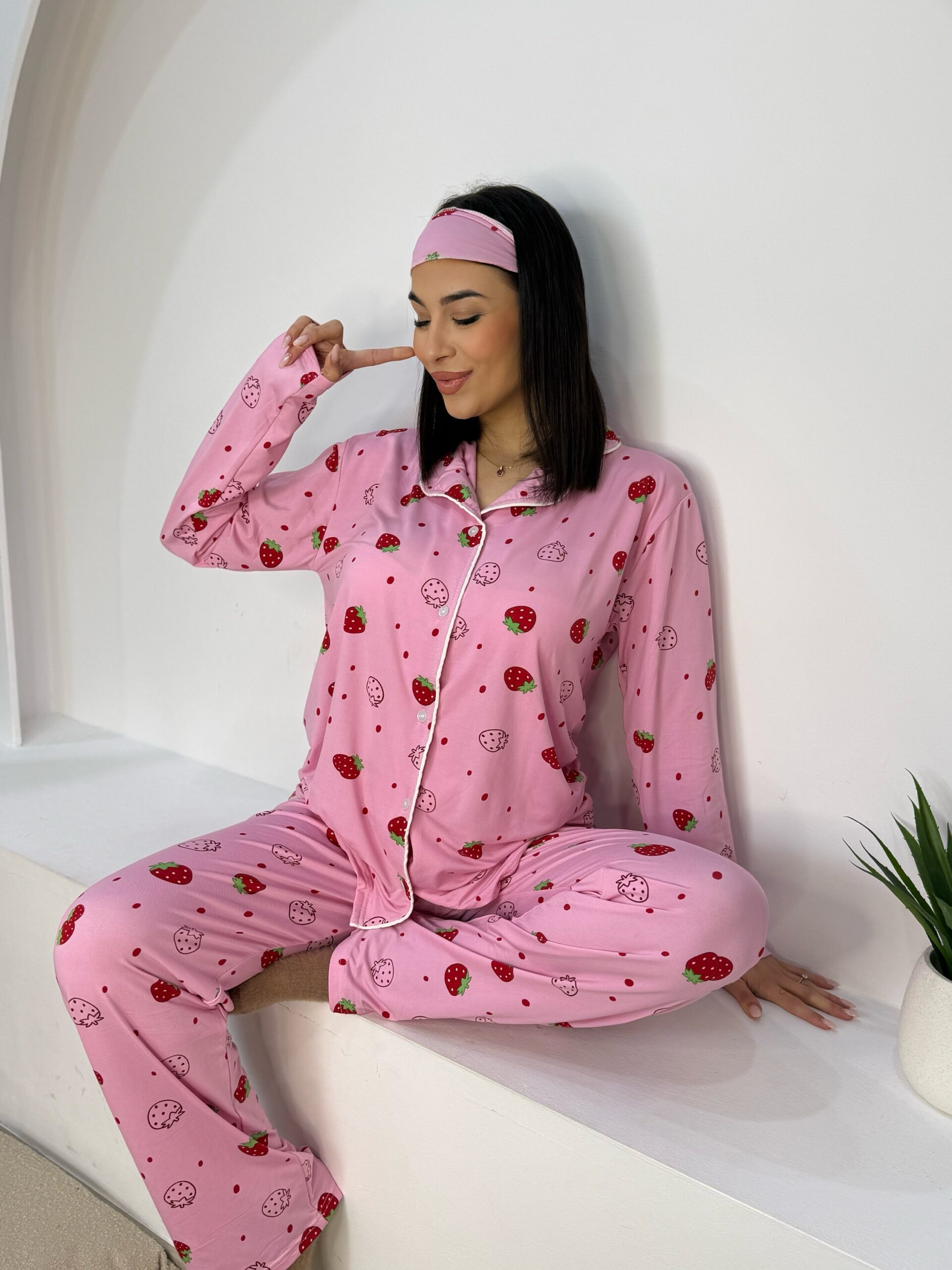 Πυτζαμα με κουμπάκια Ροζ Φραουλιτσες