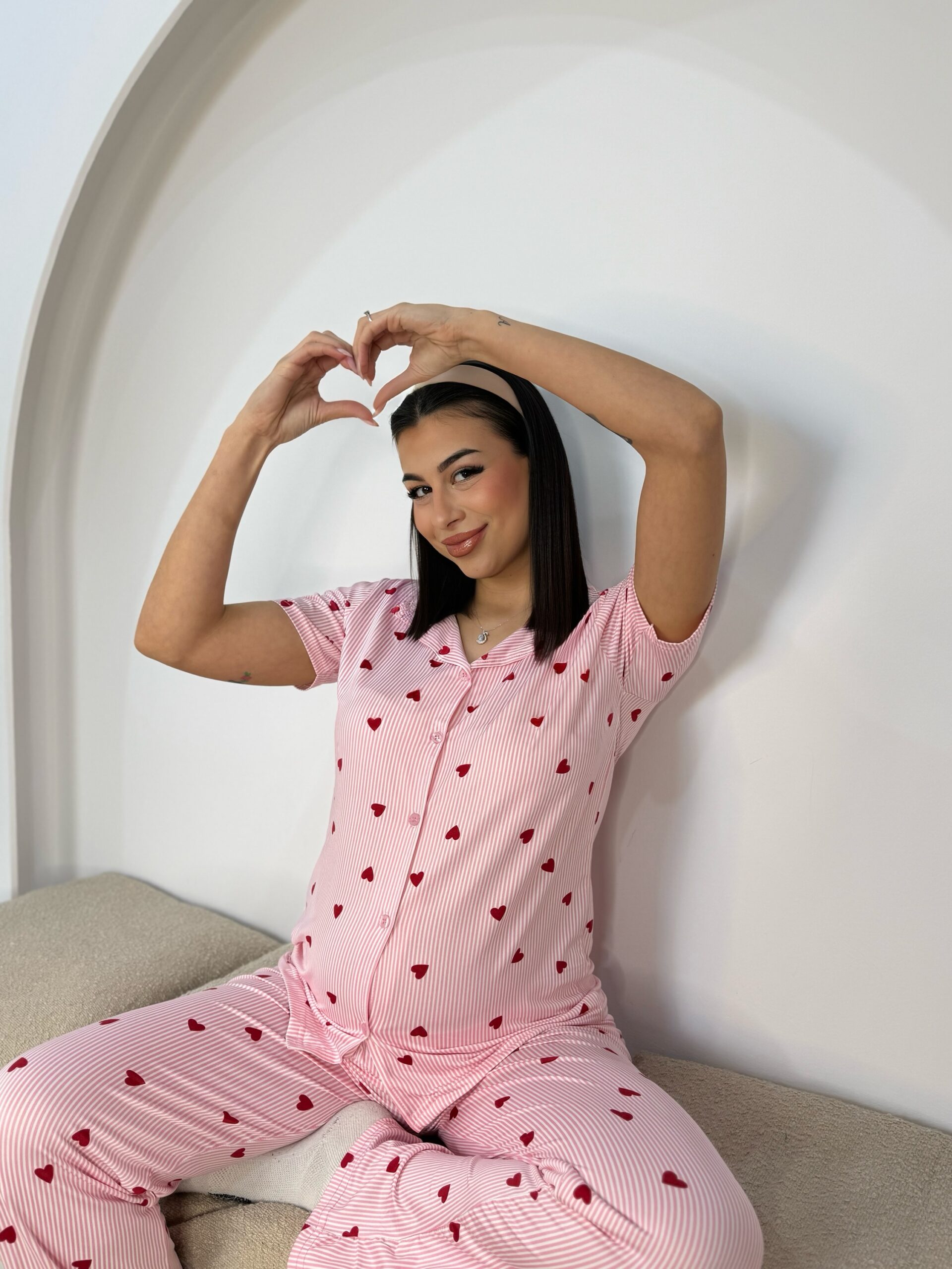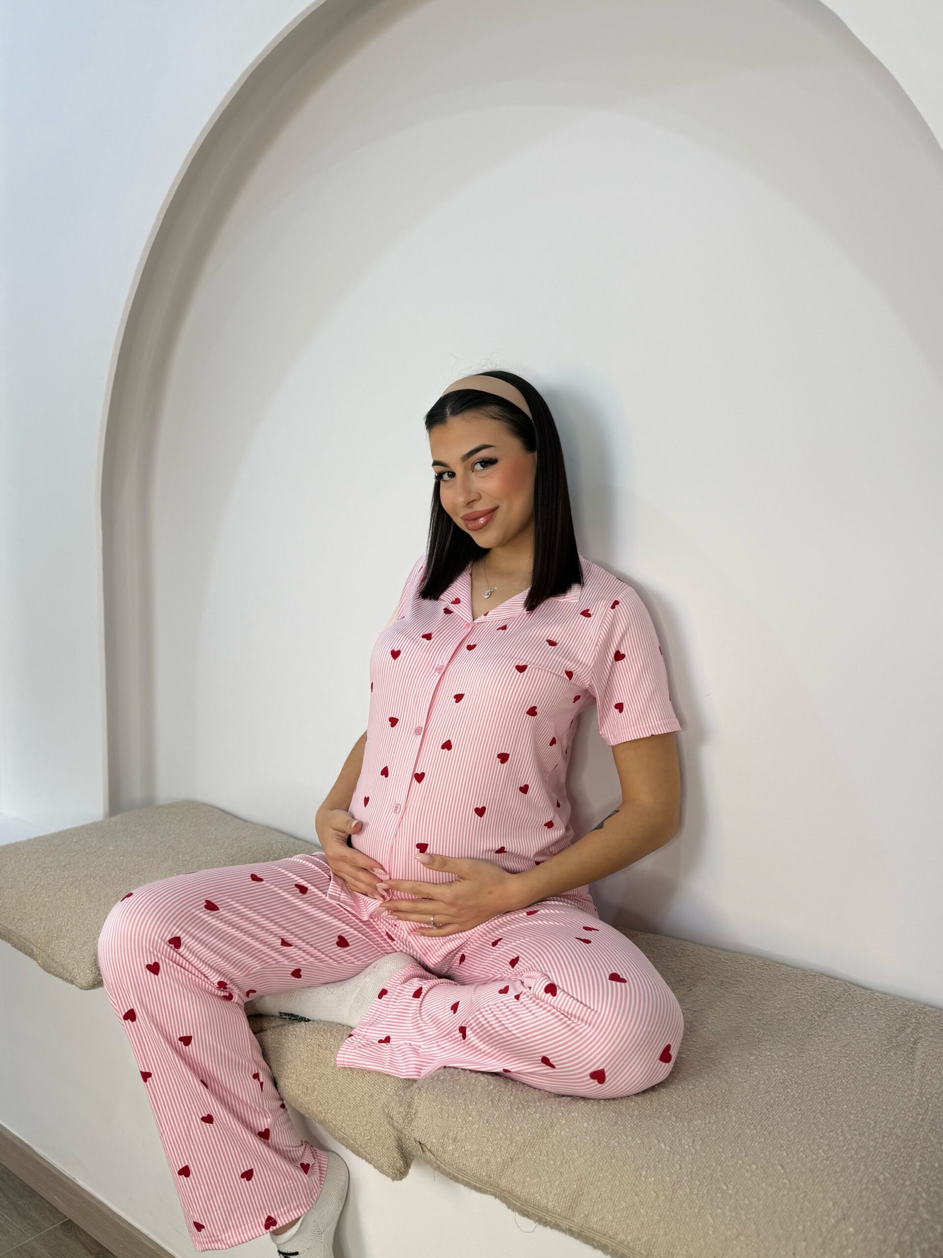 Πυτζαμα με κουμπάκια Λευκό με κόκκινες & ροζ καρδούλες