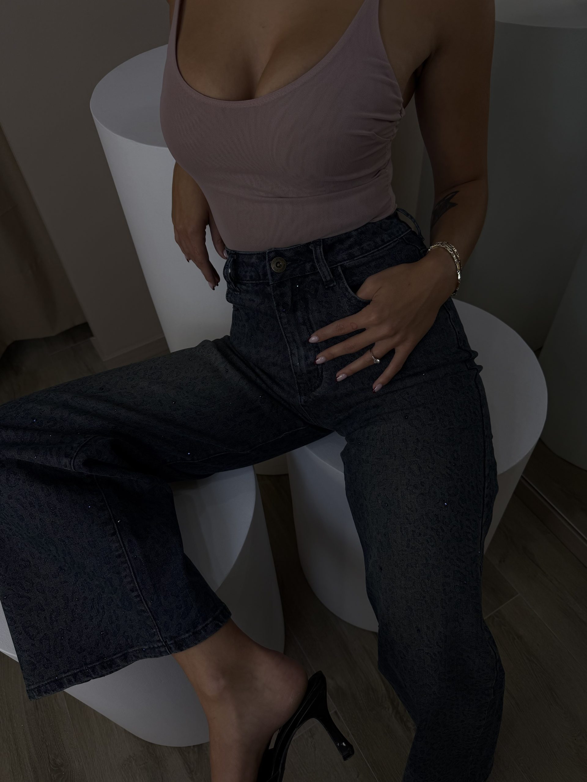 Black Strass Jeans Wide Leg