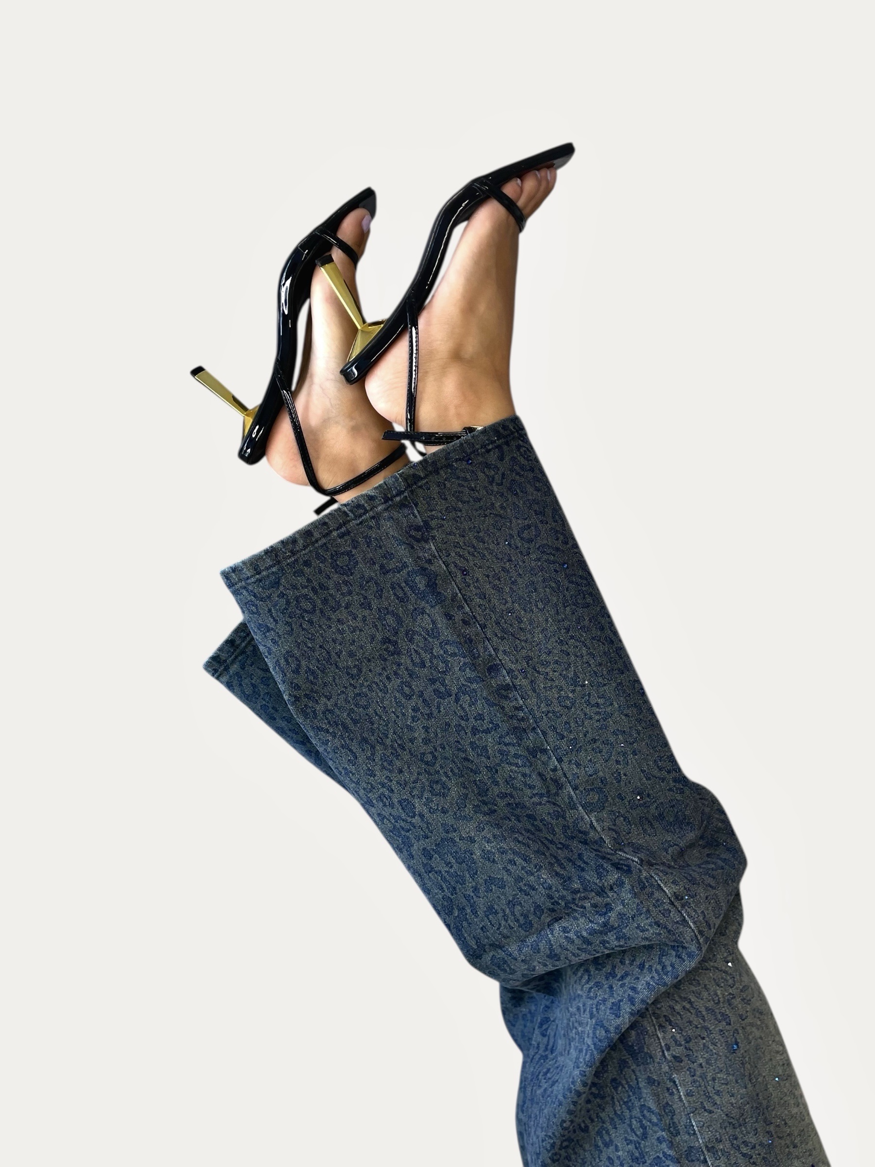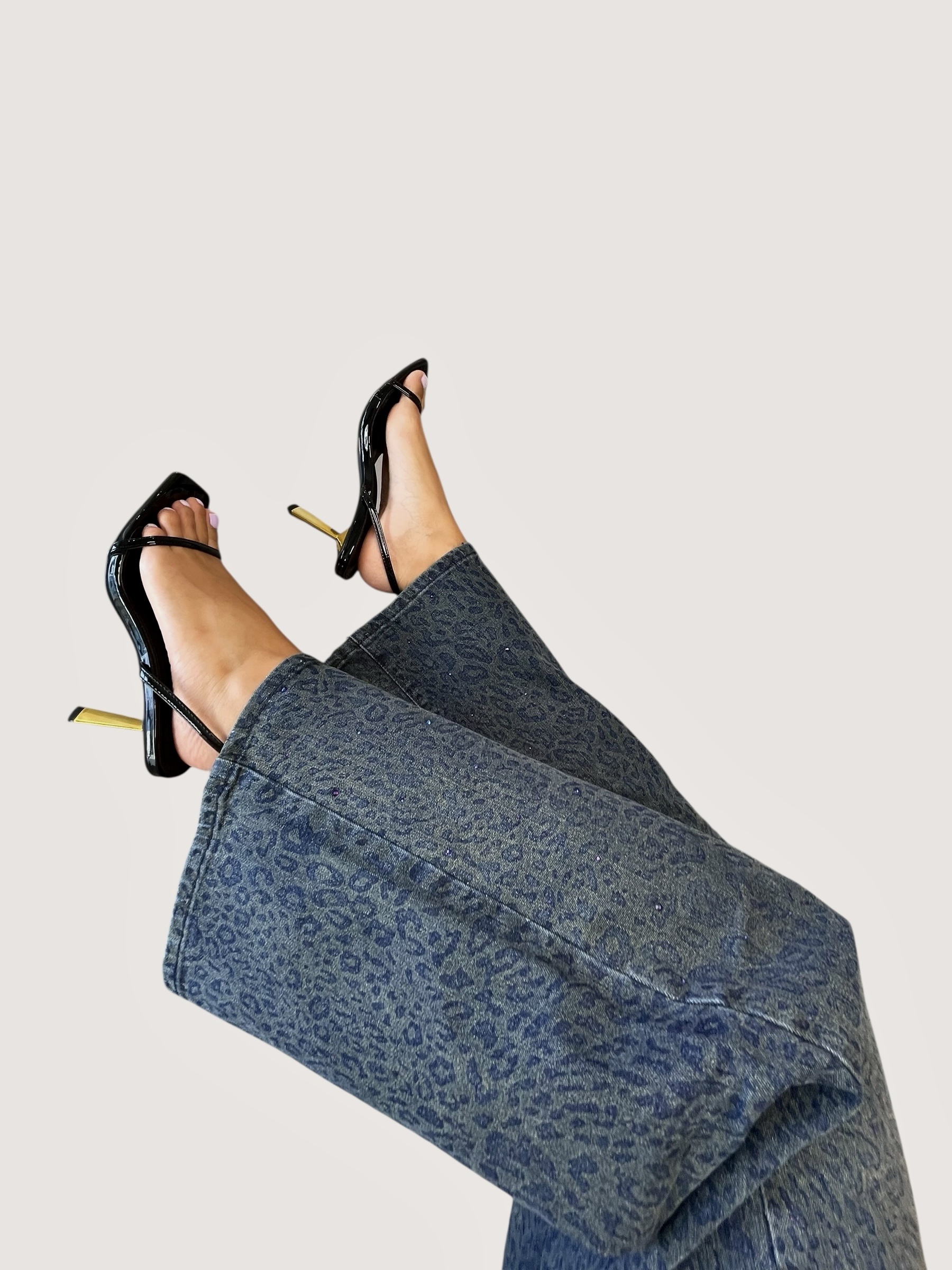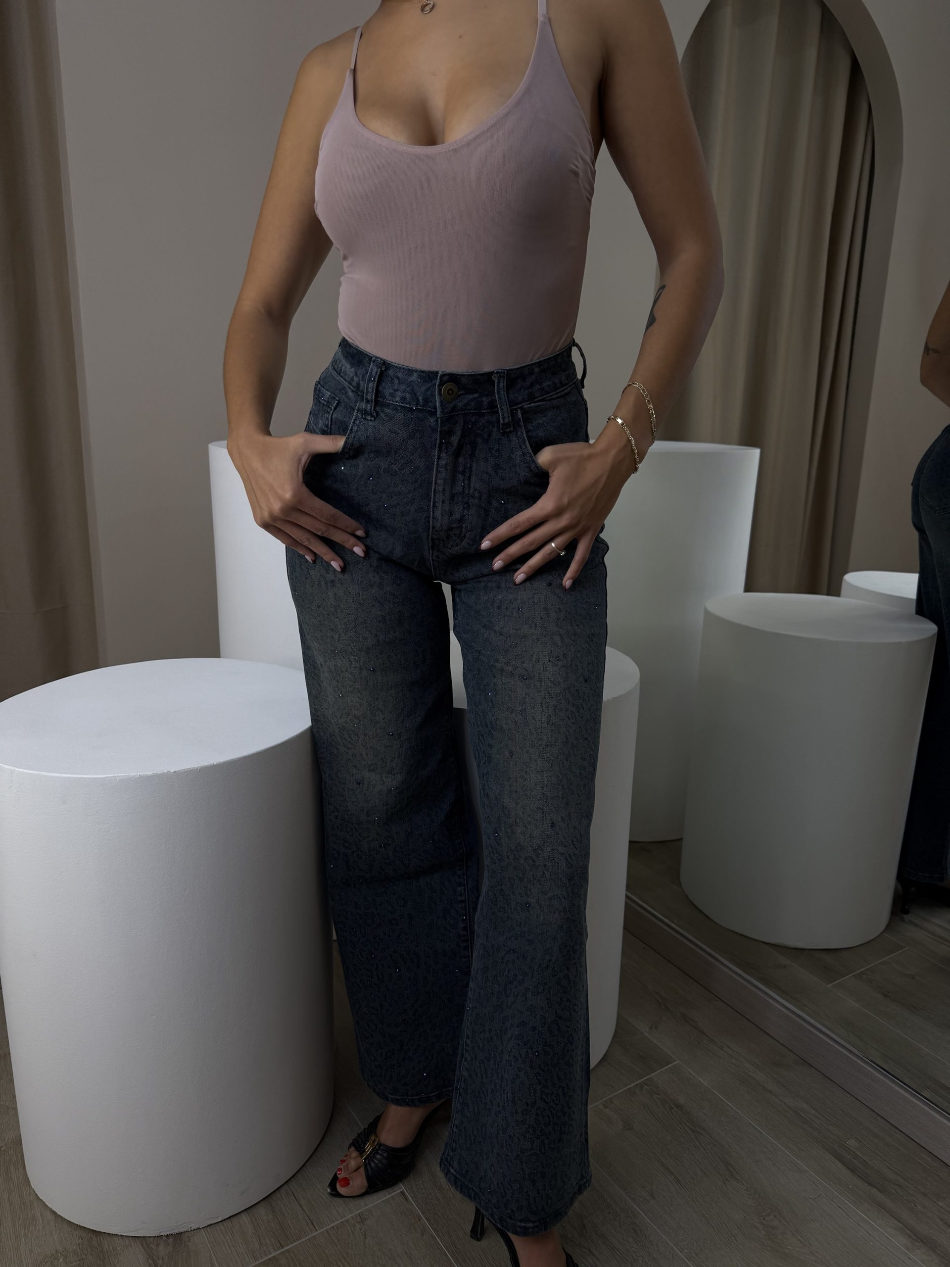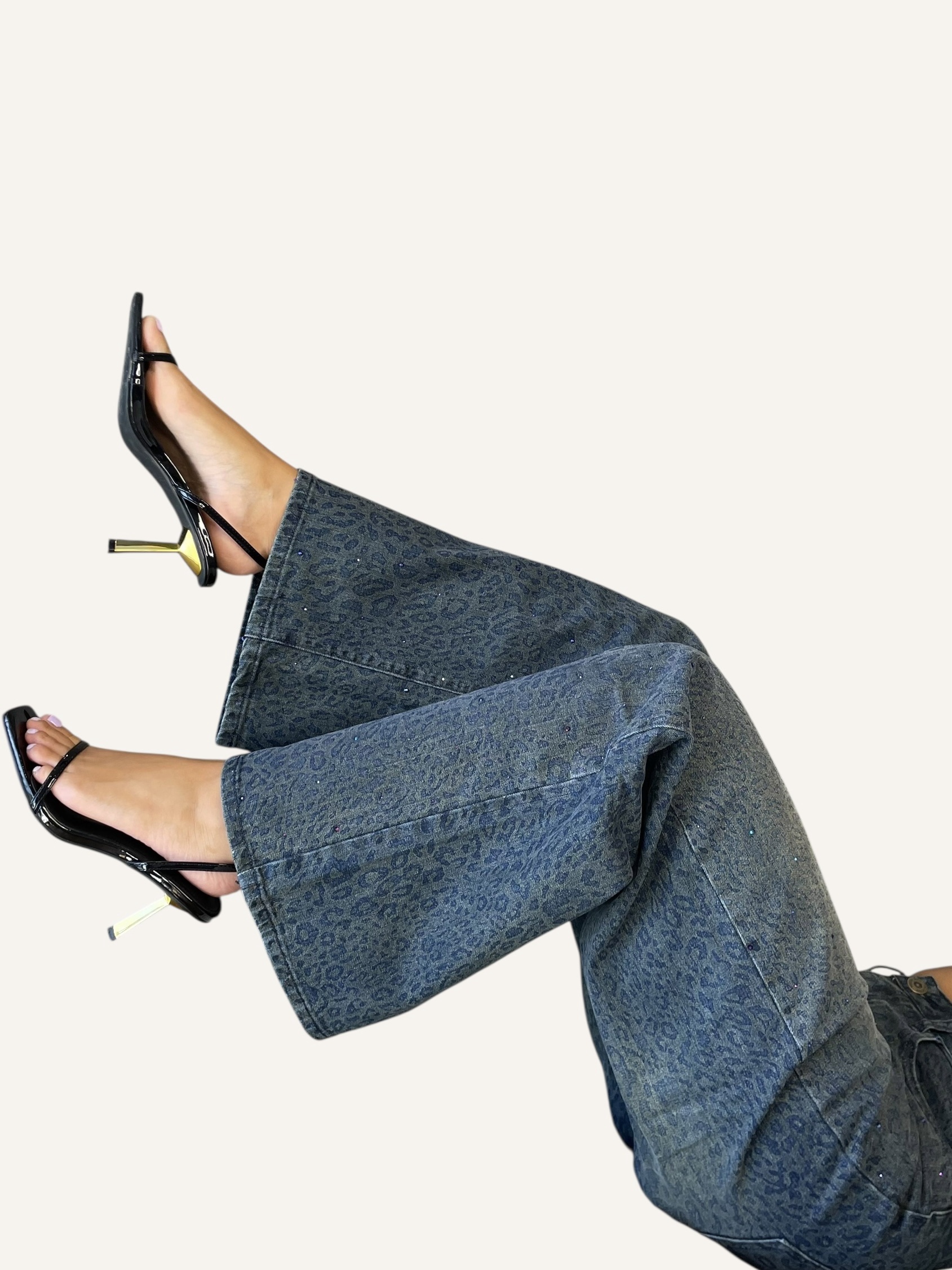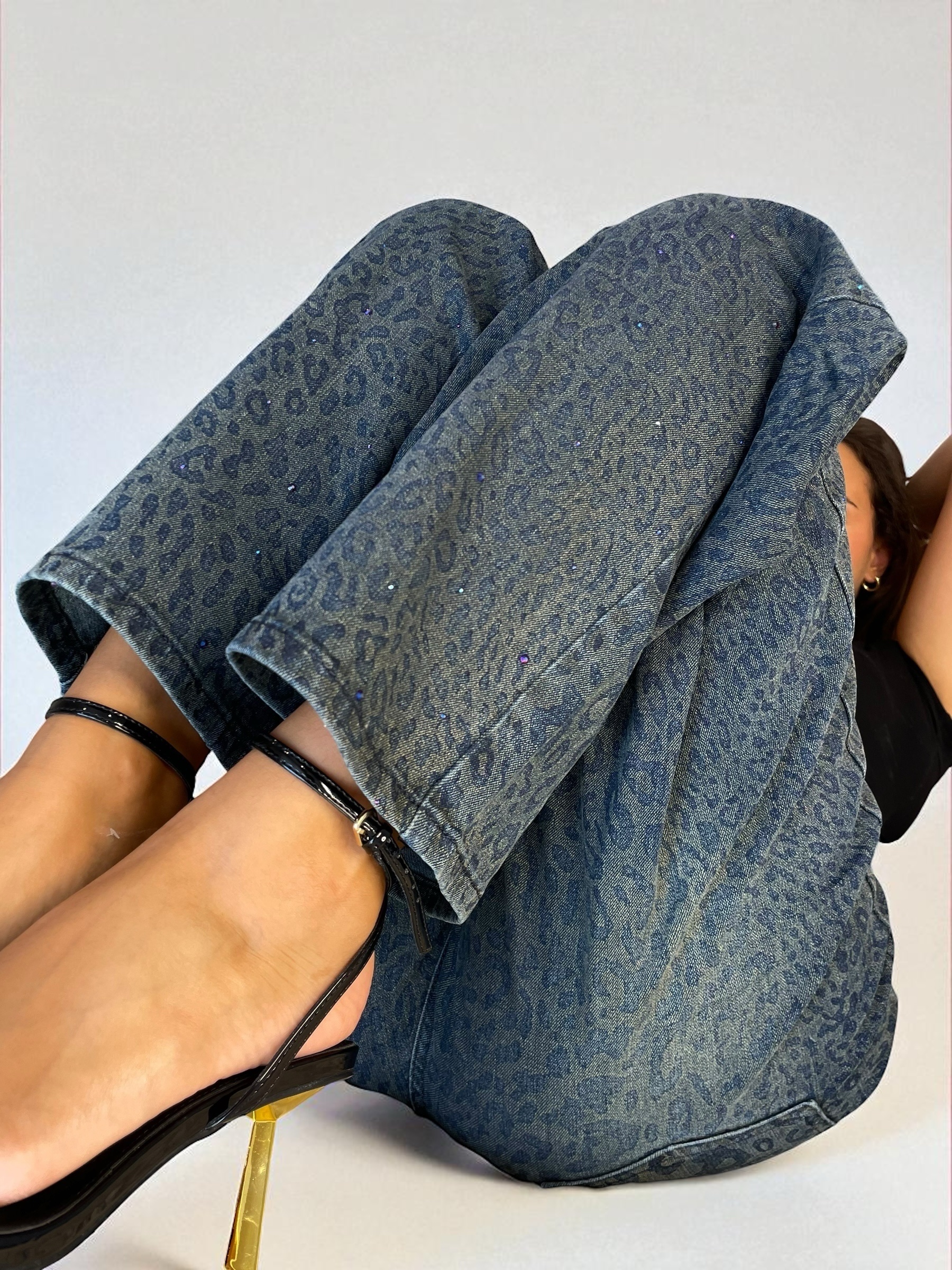Blue Jeans with Leopard Details Wide Leg