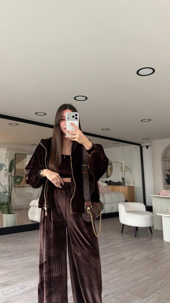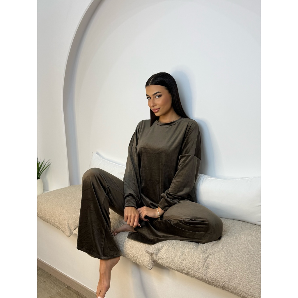 Velvet Λαιμοκοψη Set Καφέ
