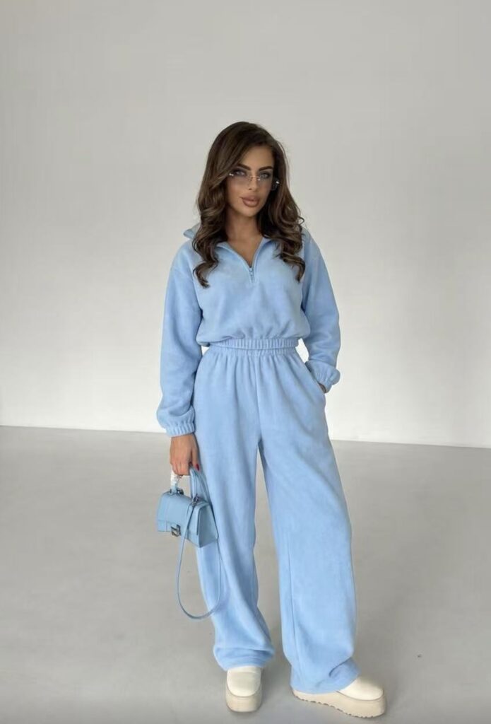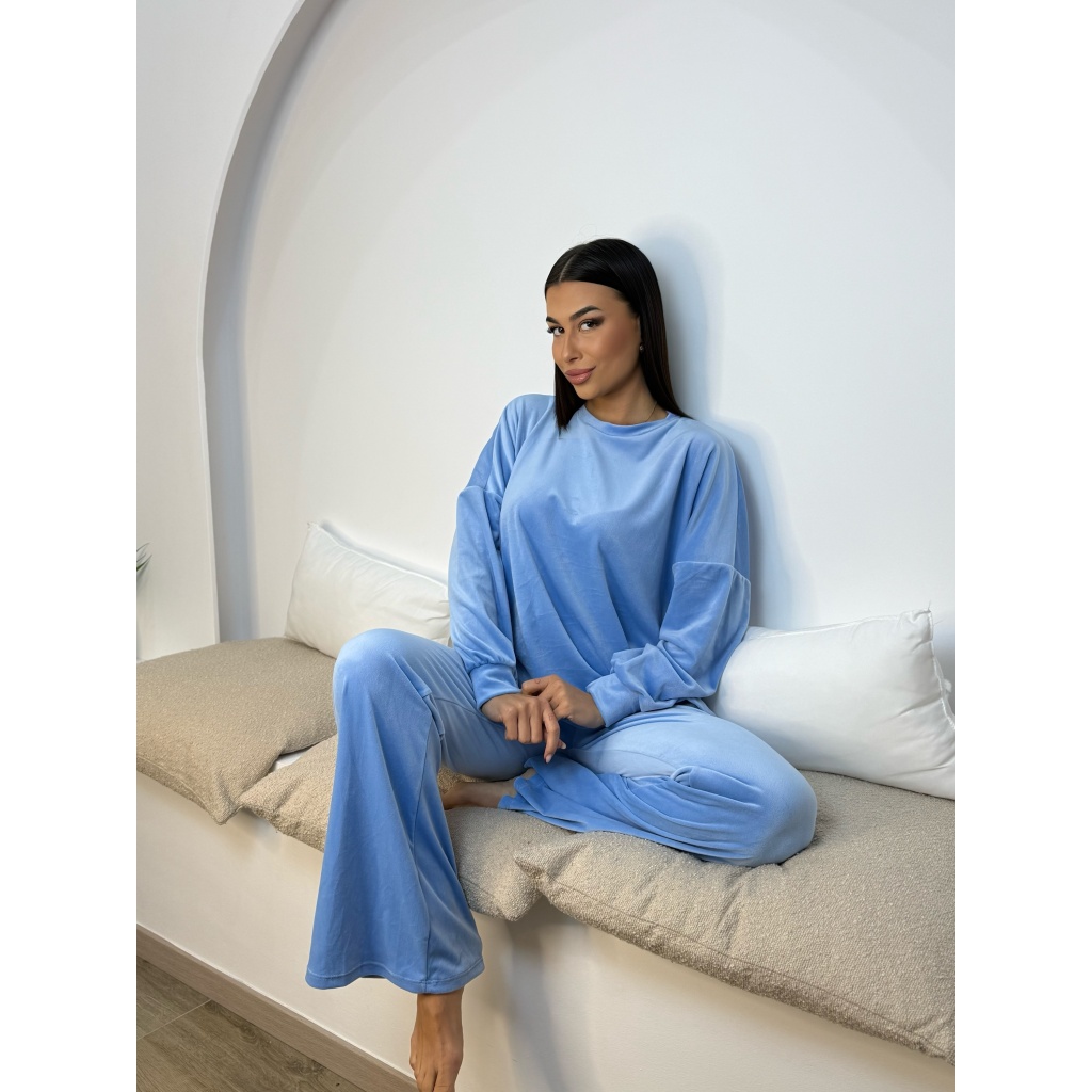 Velvet Λαιμοκοψη Set Γαλάζιο