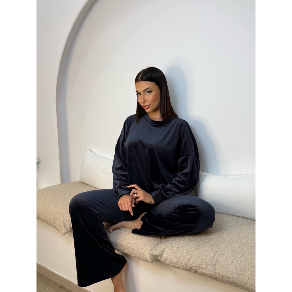 Velvet Λαιμοκοψη Set Ναυτικό Μπλε
