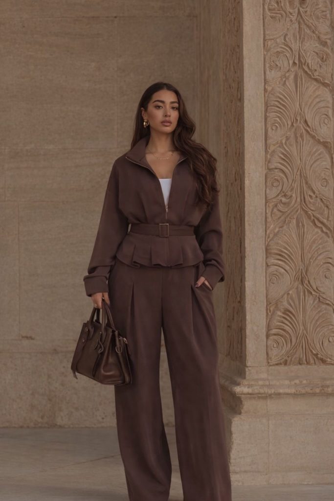 Sabrina Knit Jacket Set Καφέ