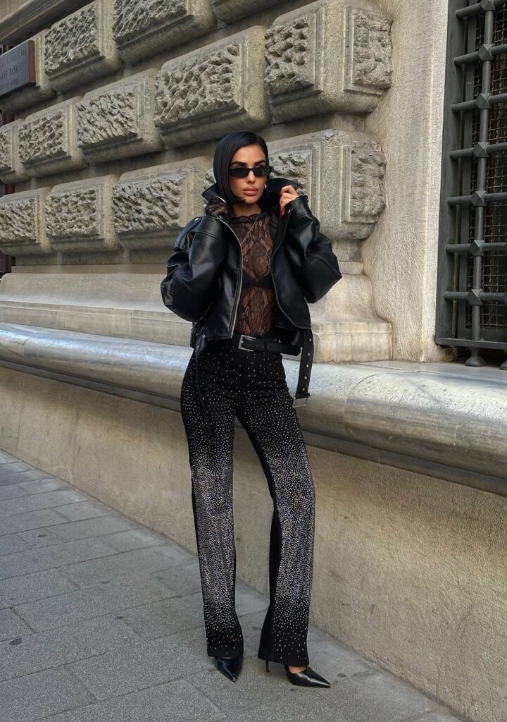 Black Strass Jeans Wide Leg