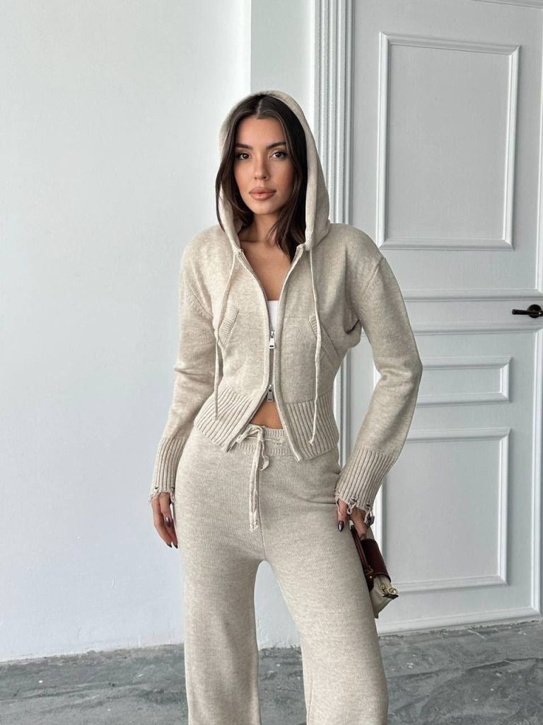 London Knit Set Μπεζ με κουκούλα